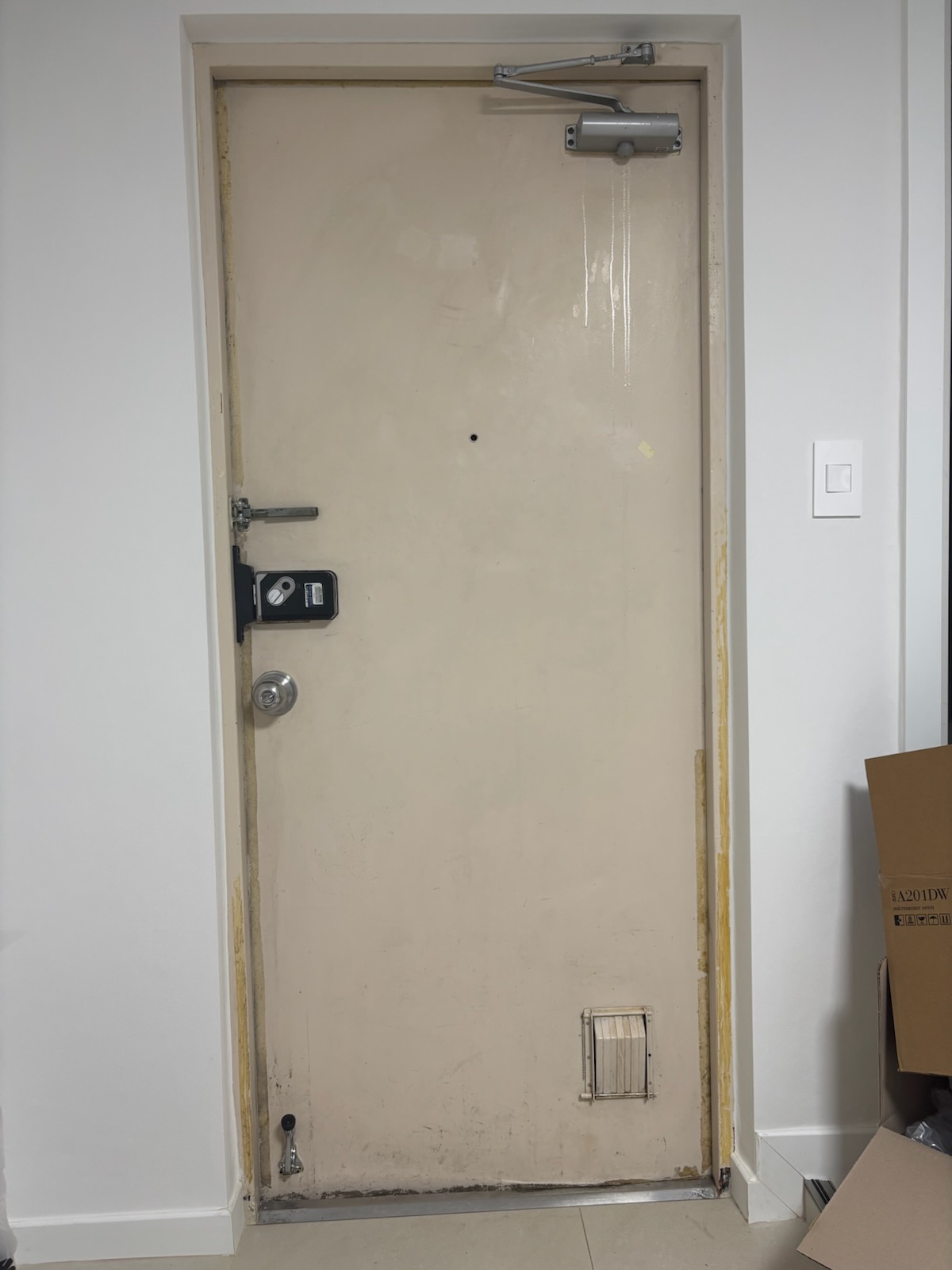 현장에서 가장 눈에 띄었던 점은 문 전체에 누런 베이지색이 도장되어 있었고,